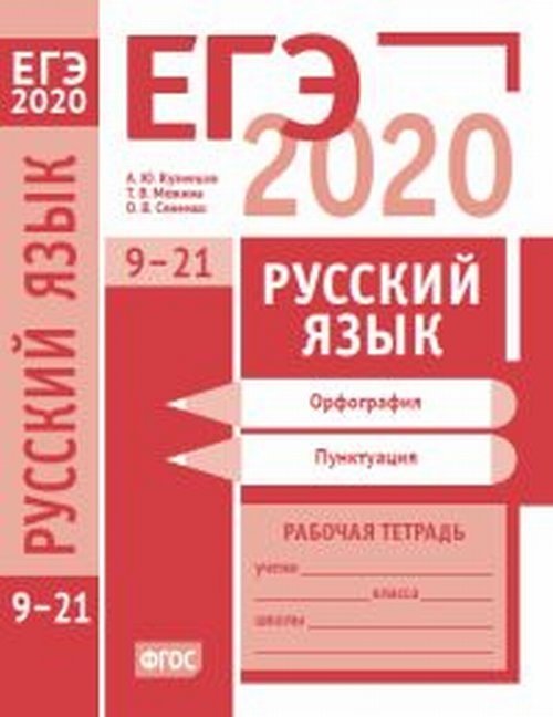 Рабочая тетрадь по русскому языку серии «ЕГЭ 2020. Русский язык» ориентирована на подготовку учащихся старшей школы к успешной сдаче Единого государственного экзамена по русскому языку в 2020 году. Пособие включает тренинги, соответствующие экзаменационным заданиям 9—15 (орфография) и заданиям 16—21 (пунктуация). Авторы книги являются разработчиками контрольных измерительных материалов по русскому языку для основной и средней школы. Подготовлено по материалам ФИПИ 2020 г. Пособие адресовано учащимся одиннадцатых классов, школьным учителям и репетиторам. Издание соответствует Федеральному государственному образовательному стандарту (ФГОС).