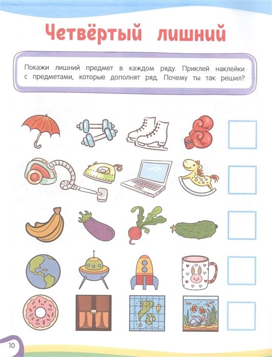 Главная задача пособия — развить мышление ребёнка. Выполняя интересные задания с обучающими и мотивирующими наклейками, малыш научится сравнивать предметы, анализировать информацию, строить логические ряды, классифицировать предметы и объединять их по определённому признаку, потренирует внимание, расширит кругозор, пополнит словарный запас. Закрепить полученные навыки помогут упражнения, где простые элементы можно превратить в забавные рисунки. Книга предназначена для заботливых родителей с целью эффективной организации детского развивающего досуга.