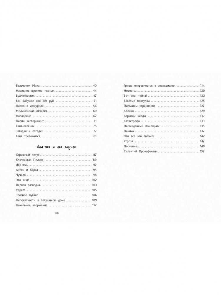 В другой повести этого сборника, которая называется «Дед-яга и его внучек”», разворачивается захватывающий дачный детектив с участием ватаги ребят, петуха, собаки со странной стрижкой и настоящего волшебника! Тайны, погони, разбитые коленки и крепкая дружба увлекут читателей и заставят с нетерпением следить за сюжетом.