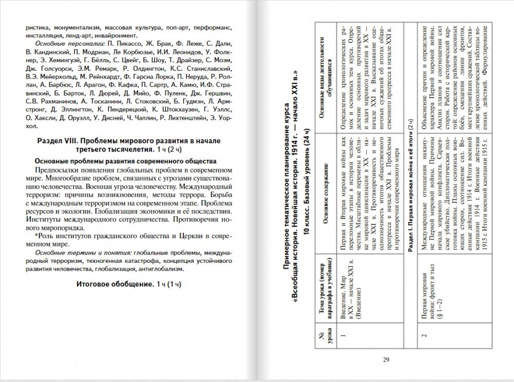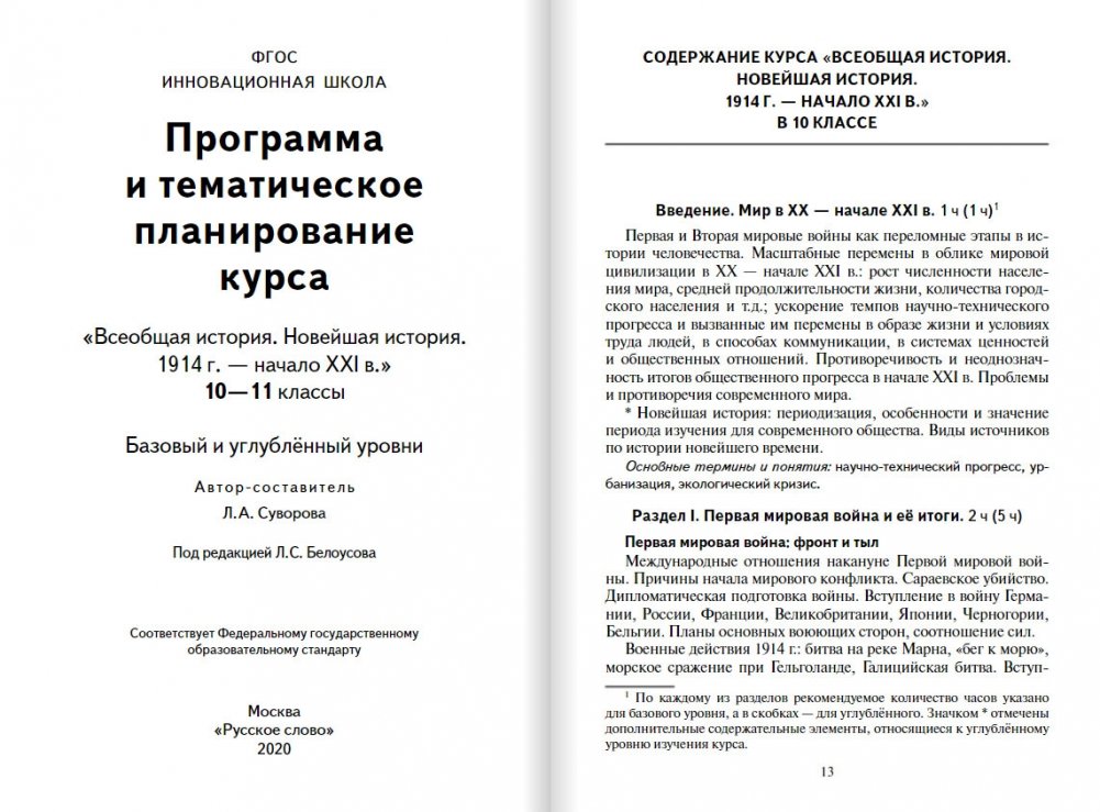 Программа и тематическое планирование курса "Всеобщая история. Новейшая история. 1914 год - начало XXI века". 10-11 класс. Базовый и углублённый уровни