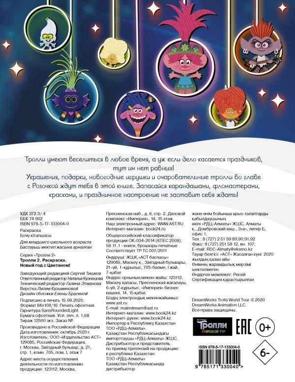 Тролли 2. Раскраска. Новый год с Цветаном!