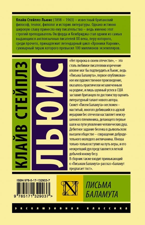 "Нет пророка в своем отечестве", – это столь любимое писателями изречение вполне мог бы подтвердить и Льюис, ведь "Письма Баламута", первое опубликованное им художественное произведение, оказалось практически незамеченным на родине, и лишь шумный успех в США заставил британцев по достоинству оценить литературный талант нового автора.
