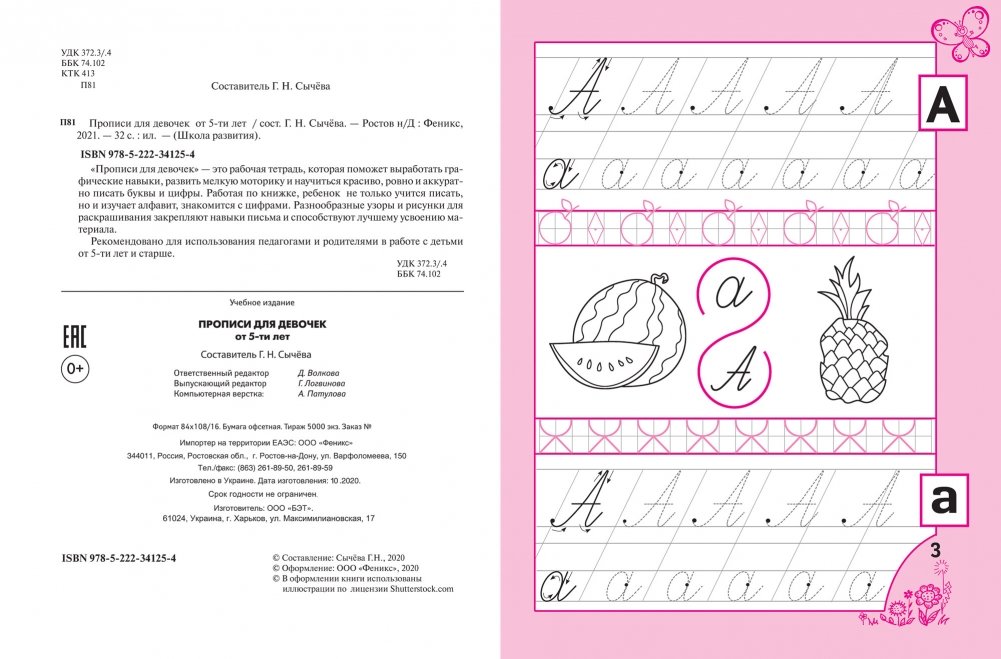 «Прописи для девочек» — это рабочая тетрадь, которая поможет выработать графические навыки, развить мелкую моторику и научиться красиво, ровно и аккуратно писать буквы и цифры. Работая по книжке, ребенок не только учится писать, но и изучает алфавит, знакомится с цифрами. Разнообразные узоры и рисунки для раскрашивания закрепляют навыки письма и способствуют лучшему усвоению материала.