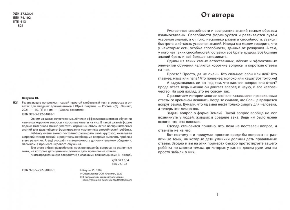 Одним из самых естественных, лёгких и эффективных методов обучения являются короткие вопросы и короткие ответы на них. В такой сжатой форме подачи материала можно уместить огромный объём легко воспринимаемых знаний для дальнейшего формирования умственных способностей ребёнка.