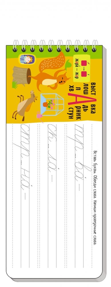 Многоразовые иллюстрированные прописи помогут ребёнку освоить грамотное написание словарных слов, слов с безударными гласными, с двойными согласными, с парными и непроизносимыми согласными. Благодаря специально подобранным заданиям и непринуждённой тренировке ребёнок научится легко преодолевать ошибкоопасные места в словах. Причем в этих прописях можно писать и стирать много раз, не боясь сделать ошибку. В процессе работы с прописями у ребёнка формируется красивый почерк, развивается словарный запас (в прописях дано несколько сотен слов), грамотная речь и мелкая моторика.