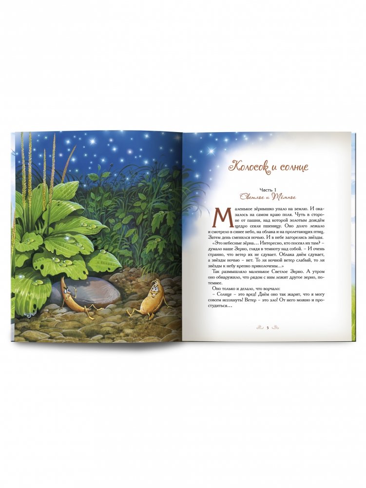 Два зёрнышка в поле упали рядом. Одно ворчало, прячась от дождя и солнца, и боялось стать толстым и прорасти. А другое мечтало дать росток и тянулось к свету. Какой, оказывается, длинный и трудный путь от маленького зёрнышка до спелого колоска! Сколько препятствий и опасностей предстоит преодолеть тоненькому ростку! Но всё не зря. Новые спелые зёрна отправляются в удивительное путешествие по элеватору. А что же стало с мрачным ворчливым зерном? Неужели оно так и осталось одиноким? Загляните в книжку и всё узнаете. Познавательные сказки расскажут малышу об окружающей нас природе. Жизнь колоска пшеницы, от рождения до превращения в хлеб, новая история из серии «Добрых сказок» об удивительных природных явлениях.