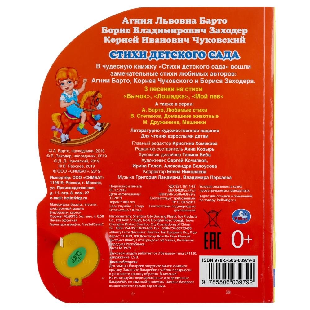 Компактная книга из прочного безопасного картона с кнопкой для прослушивания. Любимые авторы, народные фольклор, истории по мультфильма, и конечно, 3 песенки!