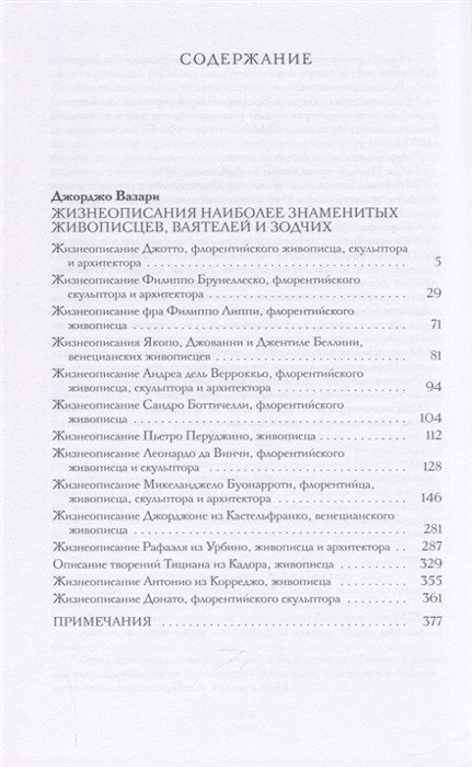 В издание вошли биографии четырнадцати наиболее известных современному читателю творцов искусства, а также репродукции живописных работ Дж. Вазари.