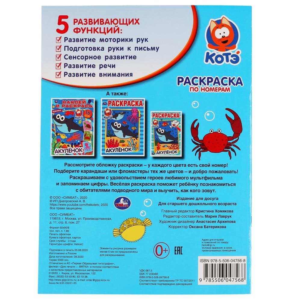 Раскраска по номерам «Котэ. Акулёнок» ТМ «УМка» - отличный подарок для ребёнка: