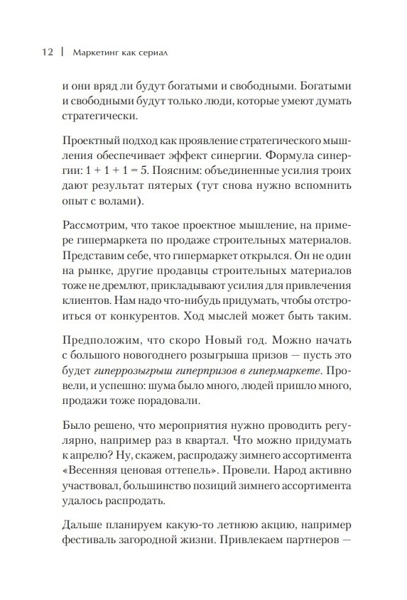 Если ваши маркетинговые коммуникации не предполагают продолжения, как хороший сериал, то каждый раз вы боретесь за внимание потенциальных клиентов с нуля, прикладывая много сил и вливая в продвижение значительные суммы. Если же ваш маркетинг предполагает продолжение, и люди ждут следующей «серии», то вы сохраняете людей «теплыми», и их не надо «греть» каждый раз заново. Таким образом, эффективность и рентабельность коммуникаций возрастает в разы. Можно предлагать клиентам самим принимать участие в создании вашего сериала, тем самым укрепляя их лояльность. Ия Имшинецкая — автор технологии системного продвижения — рассказывает, как выстроить линию маркетинговых коммуникаций, чтобы клиенты следили за ней и всегда ожидали продолжения. Издание будет полезно руководителям и собственникам бизнеса, а также тем, кто только собирается открыть собственное дело; руководителям и менеджерам отделов маркетинга, рекламы и PR, а также преподавателям курсов по маркетингу и маркетинговым коммуникациям.