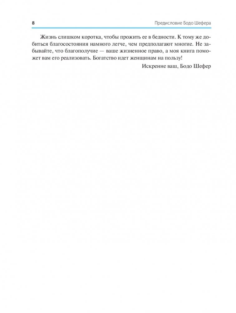 Финансовый эксперт Бодо Шефер считает, что женский склад личности идеально подходит для распоряжения деньгами. Книга наглядно демонстрирует всем представительницам прекрасного пола, насколько легко и успешно они могут справиться с ролью своего личного «министра финансов».