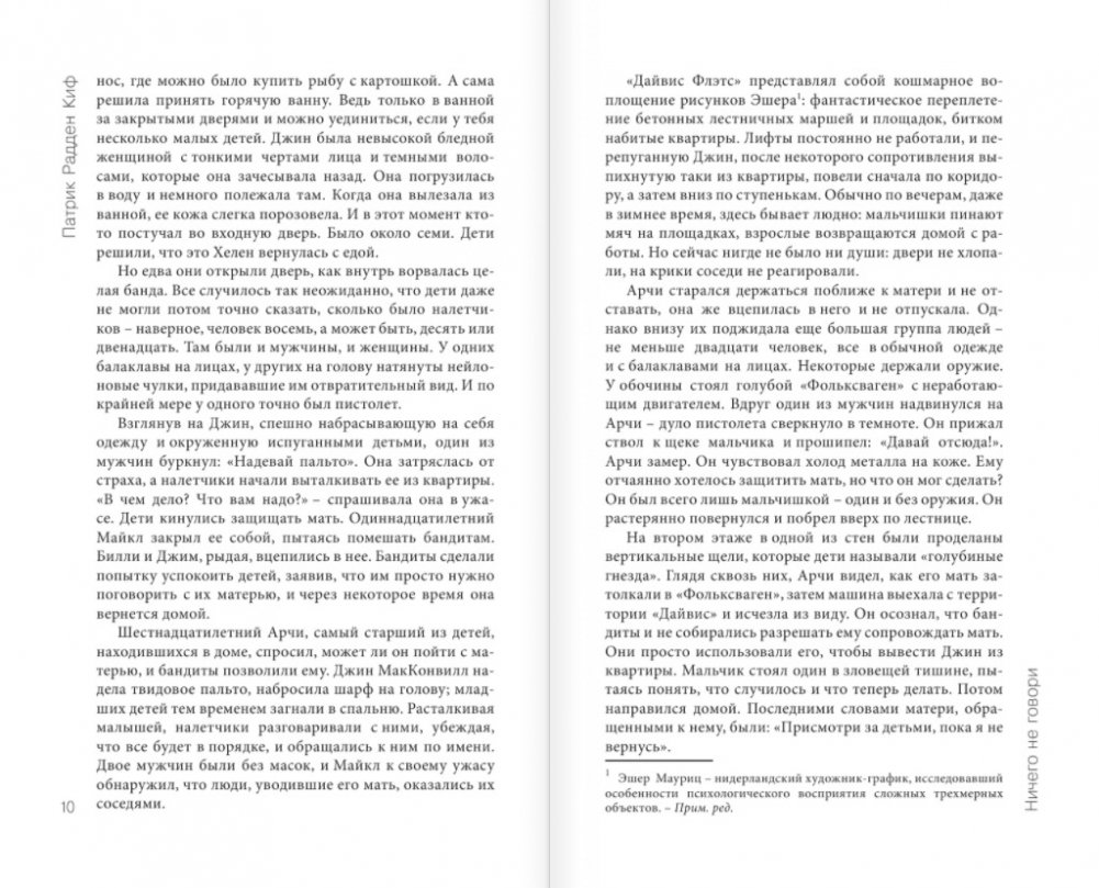 Американский журналист и лауреат национальной премии Патрик Радден Киф («Нью-Йоркер») предпринял попытку разобраться в самой сути англо-ирландского конфликта, его истинных причинах и последствиях для населения. Избрав точкой отсчета печально известное дело МакКонвилл (похищение обвиненной ИРА в пособничестве британской армии матери десяти детей, чьи останки были обнаружены только через три десятилетия), Киф предлагает осмыслить масштабы социальной катастрофы и ответить на вопрос, стоит ли борьба за свободу стольких кровопролитий и искалеченных судеб.