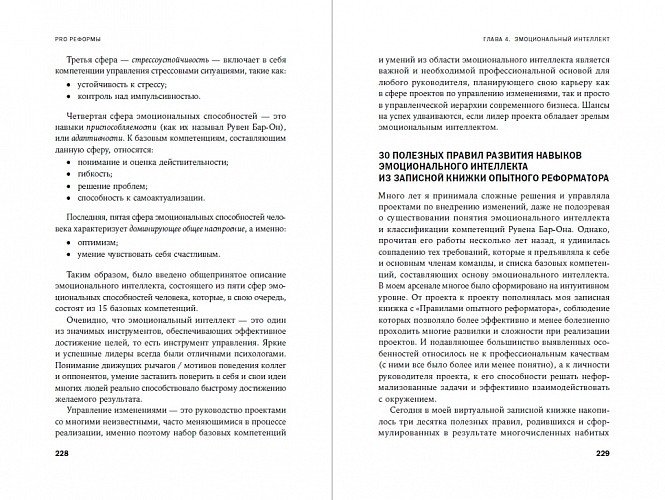 В книге она делится собственной методологией подготовки компании к трансформации и управления изменениями, описывает типовые ситуации, предпосылки успеха и причины неудач, дает правила развития эмоционального интеллекта руководителя, который является залогом успешной работы лидера изменений.