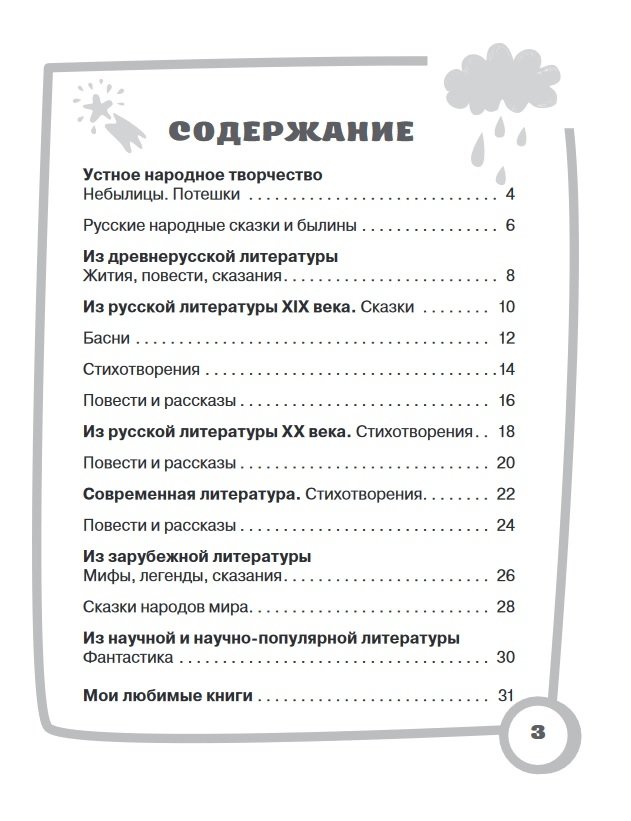 Для удобства заполнения тетрадь поделена на тематические разделы «Русские народные сказки», «Пословицы и поговорки», «Стихотворения о природе», «Рассказы о животных» и другие, и ученик лишь записывает прочитанное в нужный раздел.