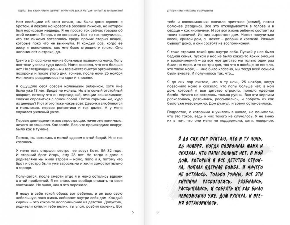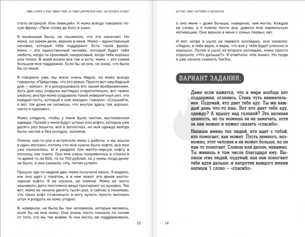 В книге я не только честно расскажу свою историю, но и попробую зарядить тебя на победу — победу над страхами, скованностью, стеснением. Ты все сможешь! Я уже в тебя верю, а значит, тебе осталось только поверить в себя! Понимаю, это не так‑то просто, мне понадобилось немало времени, чтобы почувствовать себя уверенно, а мои близкие меня поддерживали. Поэтому я хочу поддержать тебя, помочь пройти этот путь.