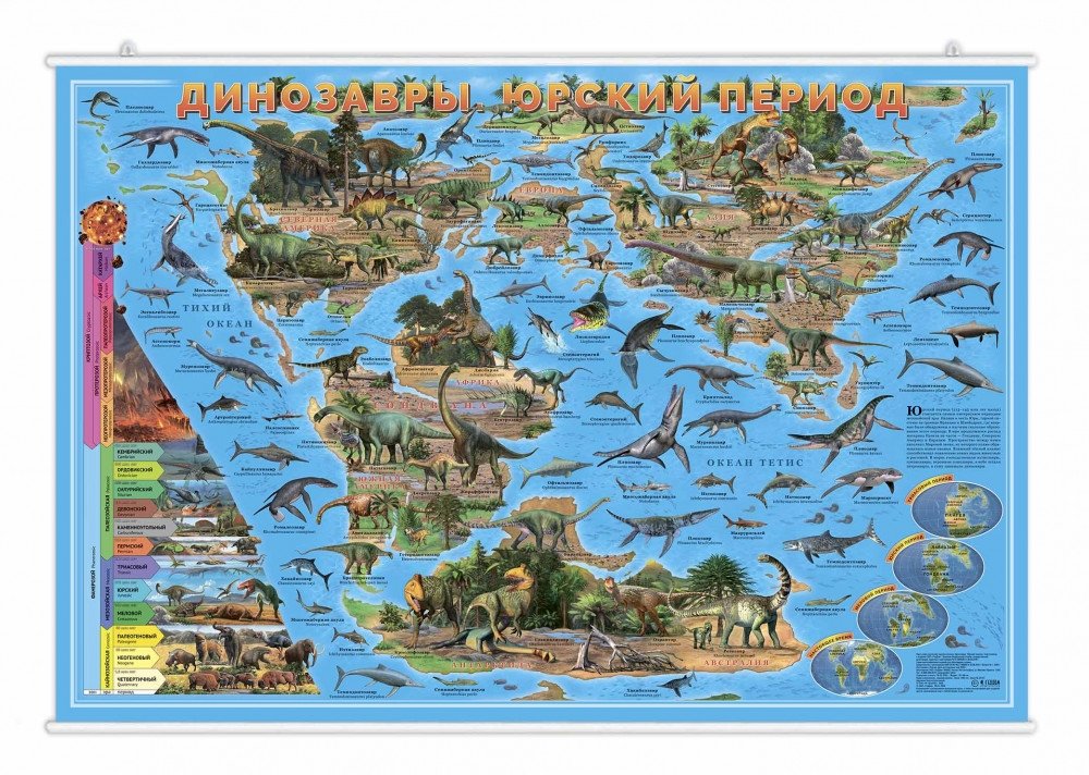 Карта настенная на рейках "Динозавры. Юрский период", 101х69 см (ламинированная)