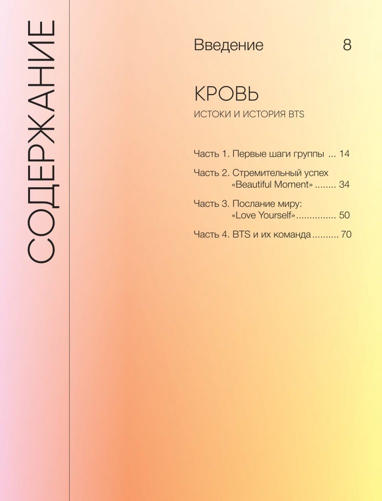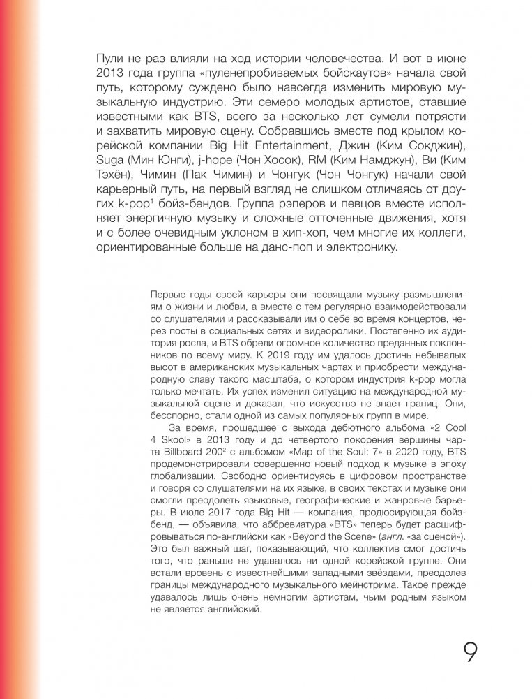 Почему BTS стали выдающимся музыкальным феноменом? Как семерым "пуленепробиваемым бойскаутам" удалось сломать барьеры мировой музыкальной индустрии и приобрести славу не только в Южной Корее, но и за ее пределами? Журналистка и k-pop-эксперт Тамар Херман в своей книге "BTS: кровь, пот и слезы" исследует истоки и историю успеха группы, специфику ее стиля, звучания и образ, сложившийся благодаря непрерывному труду и таланту ее участников. Она касается каждого аспекта BTS — дискографии, текстов песен, биографий Джина, Suga, J-hope, RM, Чимина, V и Чонгука, особенности их общения с поклонниками, влияния на мировую сцену и позиционирования в медиапространстве. Как в 21 веке, когда все вокруг меняется с каждым днем, им удается оставаться на пике славы, постоянно приобретать новых слушателей и не терять актуальность? Это книга о талантливой семерке, которая сумела влюбить в себя весь мир и до сих пор не перестает его удивлять.