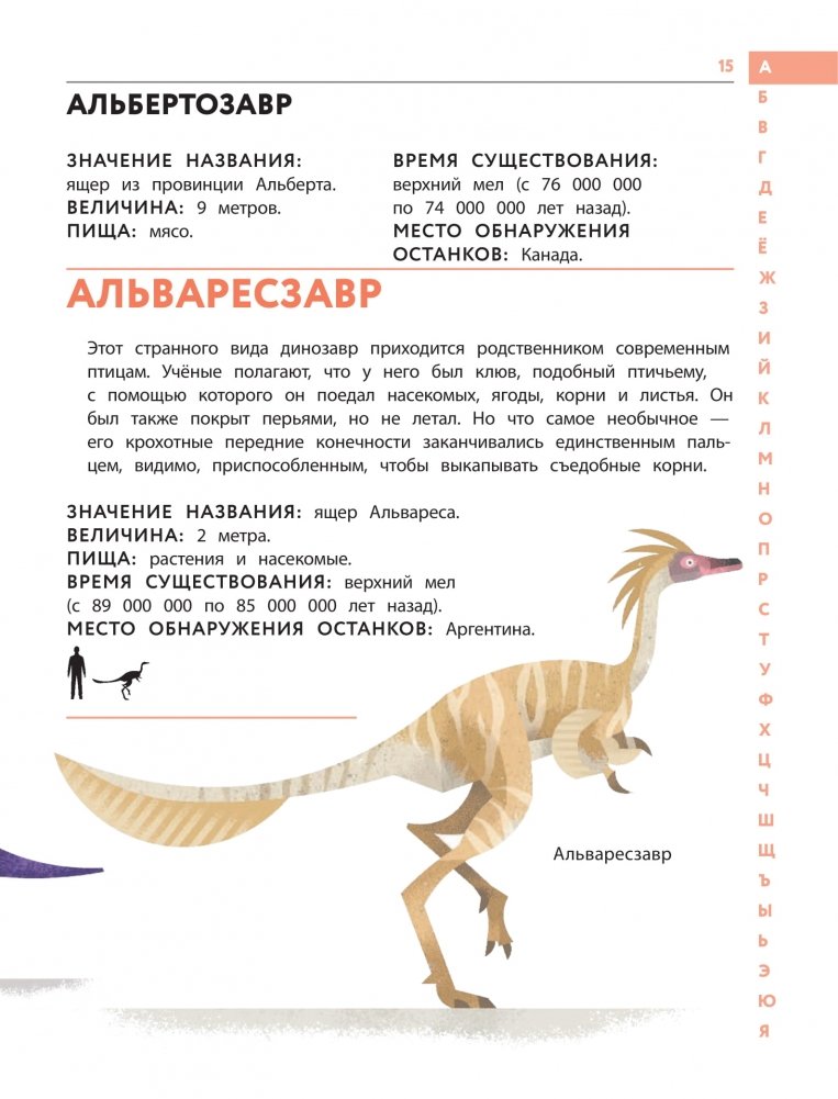 Самый полный словарь динозавров! Все первобытные ящеры от А до Я! Эта книга откроет поистине невероятнейшие тайны доисторических хозяев нашей планеты. Какой древний исполин не переставал расти в течение всей своей жизни? Кто из травоядных динозавров мог дать отпор даже ужасному хищнику аллозавру? Укус какого мезозойского ящера был втрое мощнее укуса современного льва? Существовали ли динозавры размером с курицу? Кто из ящеров и чем походил на сегодняшнюю птицу эму? Издание даст ответы на эти и многие другие вопросы об удивительных динозаврах, а неповторимые иллюстрации художника Дитера Брауна дадут ребятам возможность разглядеть каждого первобытного гиганта во всех подробностях!