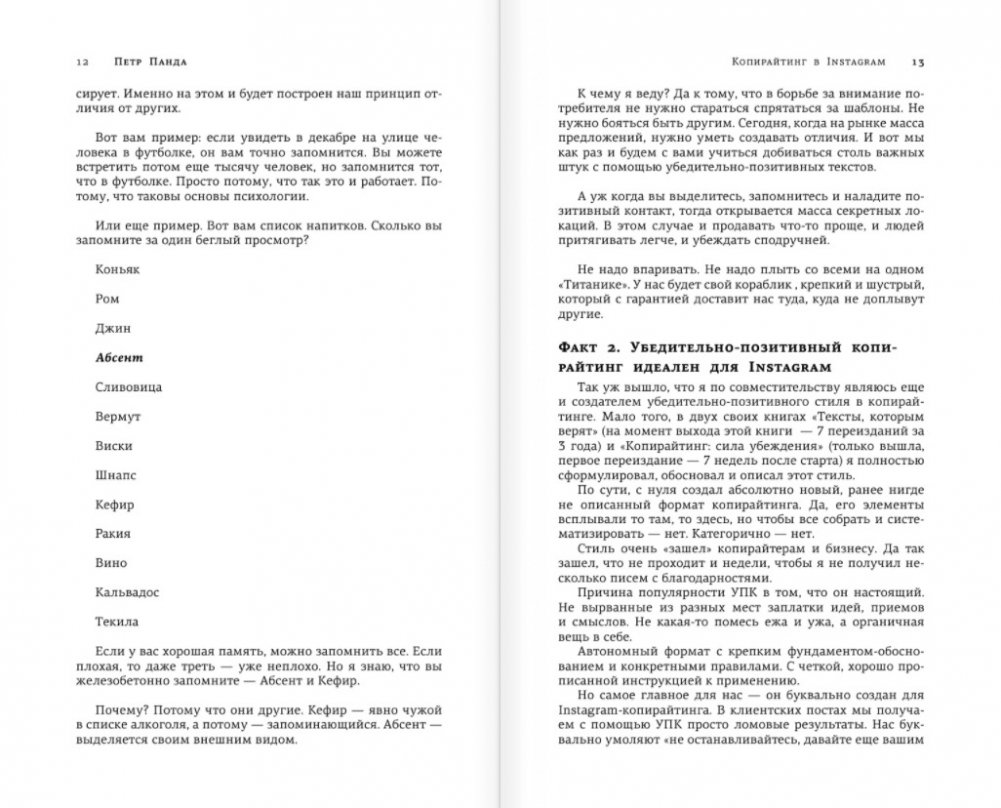 Огромный набор примеров и правил создания ярких постов для любых ниш. Автор честно рассказывает о профессиональных приемах и шаг за шагом учит писать роскошные тексты. Научитесь выделяться на общем фоне. Начните блистать с помощью особого авторского контента. Книга, которая открывает глаза на силу текста и возможности массового убеждения. Книга, которая изменит ваш Instagram!