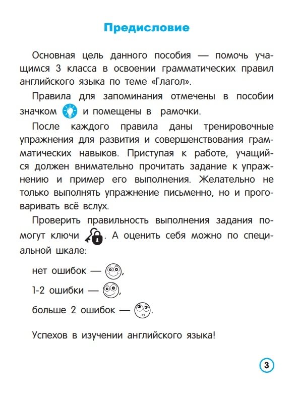 Пособие содержит правила и упражнения по английскому языку для отработки лексико-грамматических навыков по теме "Глагол". В конце тренажёра есть ключи, которые помогут проверить правильность выполнения заданий. Оценить свои знания можно по специальной шкале самооценки.