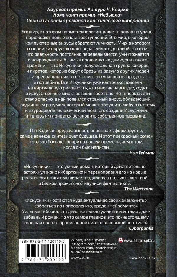 Это мир, в котором новые технологии, даже не попав на улицы, порождают новые виды преступлений. Это мир, в котором компьютерные вирусы обретают личность. Мир, в котором сознание и окружающая среда слились до такой степени, что реальность постоянно переделывается, уничтожается и возрождается. А самые продвинутые демиурги нового времени — это Искусники, полулегальная группа хакеров и пиратов, которые берут образы из разума других людей и превращают их в то, что можно упаковать, продать и потребить. Все Искусники уже настолько подсели на виртуальную реальность, что многие навсегда уходят в искусственные миры, оставив свое тело. Но теперь в сети стало опасно, в ней появился странный вирус, обладающий подлинным разумом, который может обрушить любую систему и изуродовать человеческий мозг. Его создали Искусники, и теперь им придется остановить собственное творение.