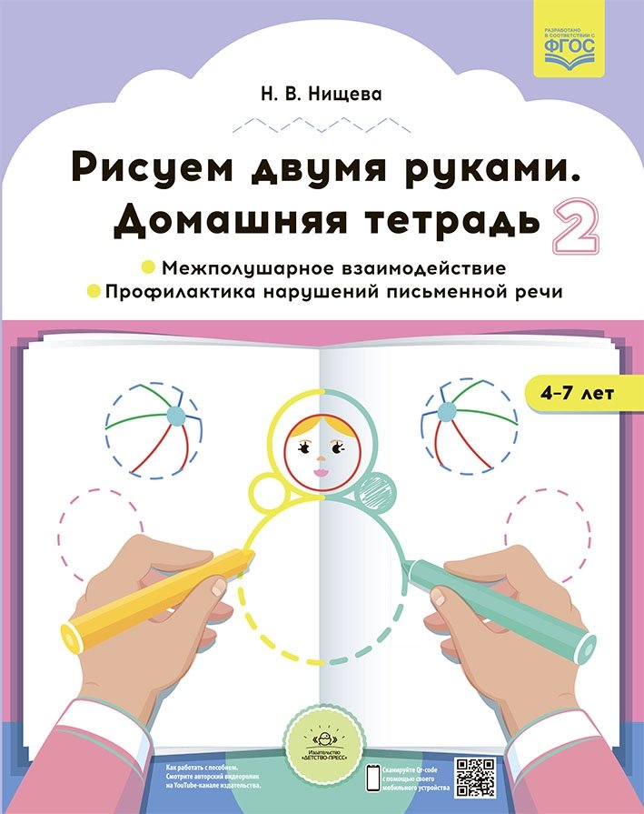 Рисуем двумя руками. Домашняя тетрадь 2. Межполушарное взаимодействие. Профилактика нарушений письменной речи (с 4 до 7 лет). ФГОС