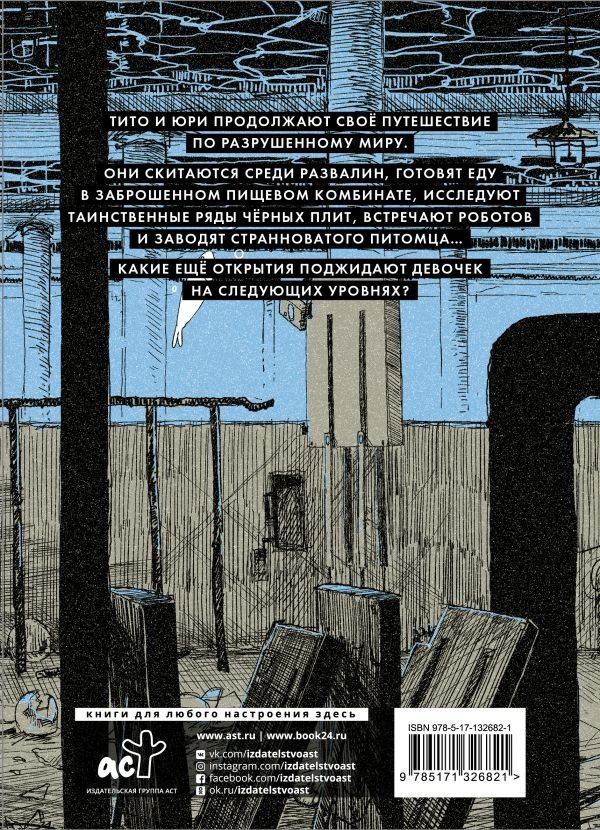 Тито и Юри продолжают своё путешествие по разрушенному миру. Они скитаются среди развалин, готовят еду в заброшенном пищевом комбинате, исследуют таинственные ряды чёрных плит, встречают роботов и заводят странноватого питомца…