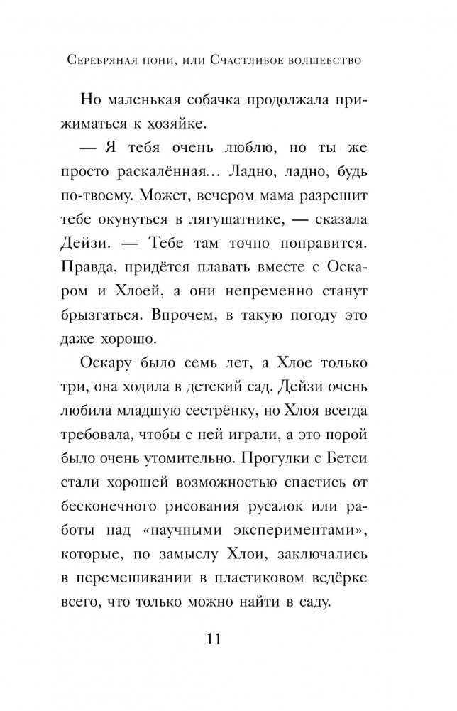 Дейзи любила смотреть на полудиких пони, бродивших по лесу возле её нового дома. Правда, лошадок девочка всё же побаивалась и никогда не подходила к ним близко. Но однажды, к изумлению Дейзи, к ней приблизилась совершенно сказочная серебристо-белая пони. Это настоящая лошадка или волшебная?