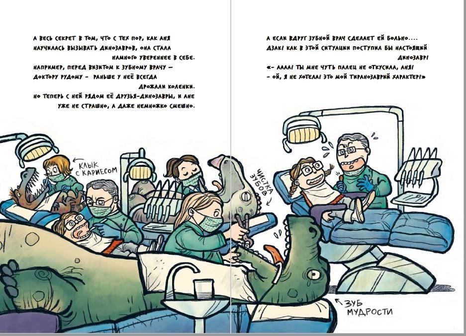 она настоящая девочка Юрского периода! Она рисует только динозавров, а ещё собирает коллекцию фигурок. Даже на школьный праздник Аня пришла в костюме тираннозавра! Интересно, что случится, если произнести волшебное слово, и динозавры вдруг оживут? Эта книга не только о любви к палеонтологии, но и о том, как ребёнку справиться со своими страхами в самых разных повседневных ситуациях: в школе, в кабинете зубного врача и даже в бассейне!