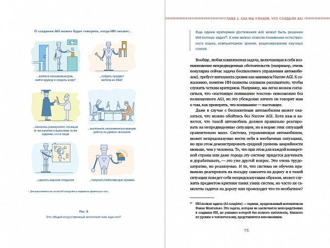 Эта книга, основанная на исследовании лучших российских специалистов по ИИ, посвящена научным подходам к созданию AGI, а также областям и потенциалу его применения. Авторы впервые обобщили и систематизировали накопленные знания в области общего ИИ — от компьютерных наук и машинного обучения до нейронаук и психологии. Это самый полный и глубокий обзор подходов к созданию AGI на русском языке. Он поможет специалистам из разных областей ИИ объединить свои знания и выработать единую стратегию по созданию общего искусственного интеллекта.