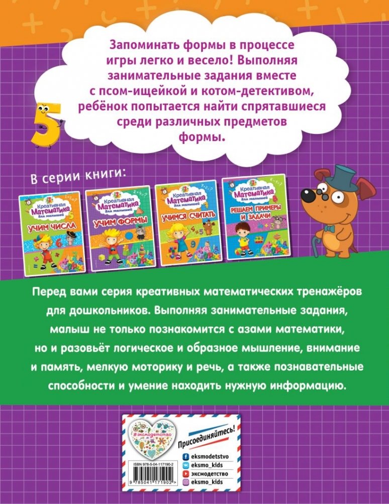 Занимаясь по этому красочному пособию, ребёнок познакомится с основными формами: кругом, квадратом, треугольником, прямоугольником, овалом, ромбом и звездой. Дозированная обучающая информация чередуется с игровыми заданиями. Такая смена деятельности делает процесс обучения более эффективным и поможет малышу сформировать ключевые навыки и почувствовать уверенность в своих силах. Кроме того, переключение внимание способствует поддержанию интереса ребенка к занятию и вызывает положительные эмоции. Книга поможет родителям и педагогам научить ребенка различать геометрические фигуры, развить его математическое мышление, внимание, память, мелкую моторику и речь, а также познавательные способности и умение находить нужную информацию.