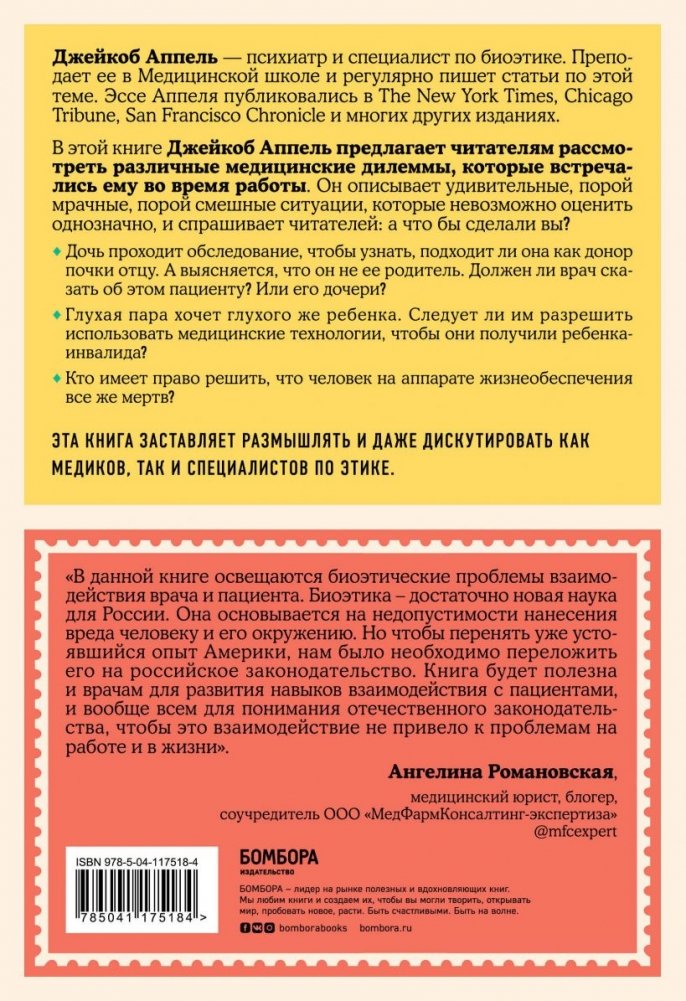 Кому должны достаться аппараты ИВЛ в критической ситуации, когда их всем не хватает? Стоит ли рассказывать родственникам пациента о причине смерти, если он просил скрыть ее? Приемлемо ли разрешать операции, намеренно калечащие человека, если он сам того желает? По поводу этих и многих других вопросов, сложных с точки зрения этики и медицины, размышляет автор, предлагая подумать и читателям. Причем не отвлеченно, а в контексте законов и морали, в которых мы все живем.