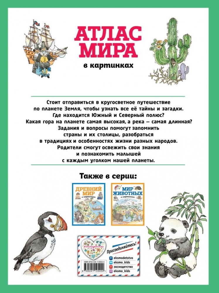 Наша Земля — удивительная планета, единственная в Солнечной системе, где есть жизнь. И жизнь эта невероятно многообразна: на каждом континенте обитают свои животные, цветут свои растения, да и людей отличают особые традиции и уклад жизни. С "Атласом мира в картинках" легко отправиться в кругосветное путешествие и получить первые знания о ландшафте, климате, животном и растительном мире разных регионов Земли. Лаконичные тексты и наполненные деталями иллюстрации помогут узнать многие тайны нашей планеты и познакомят с разными уголками земного шара.
