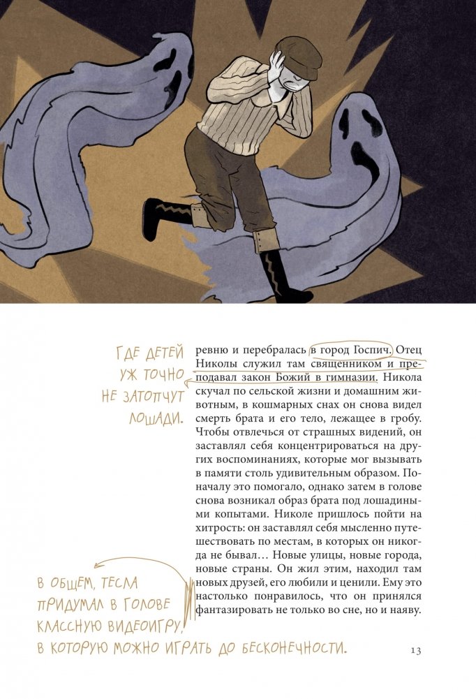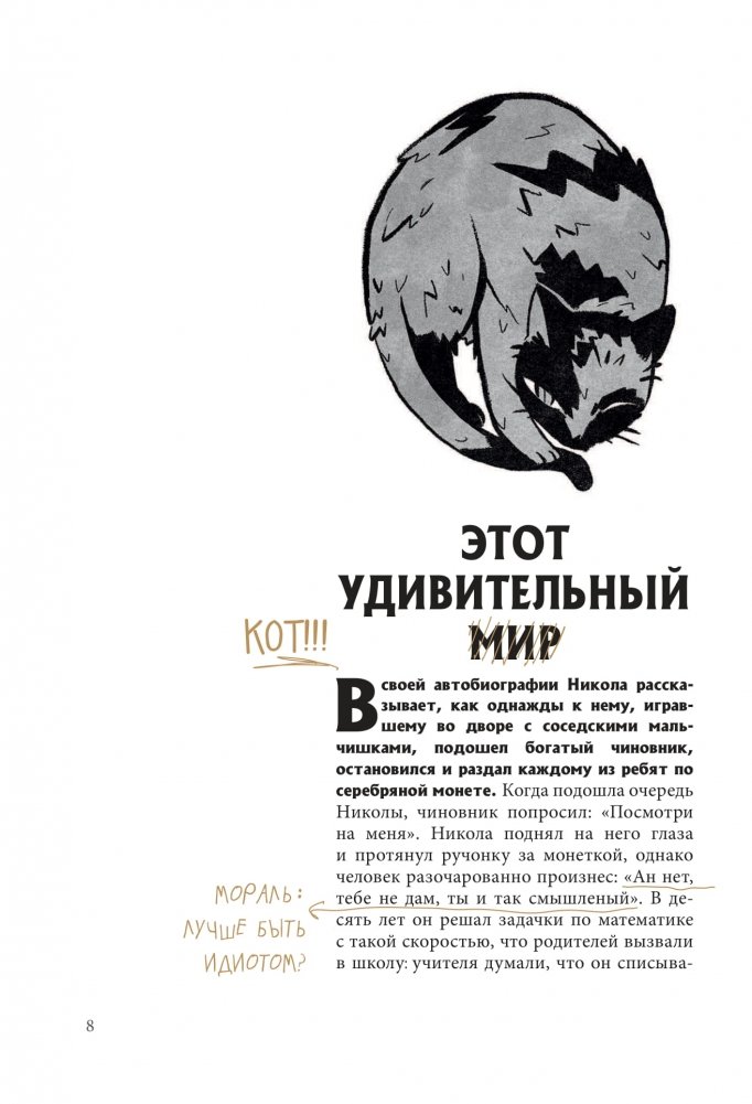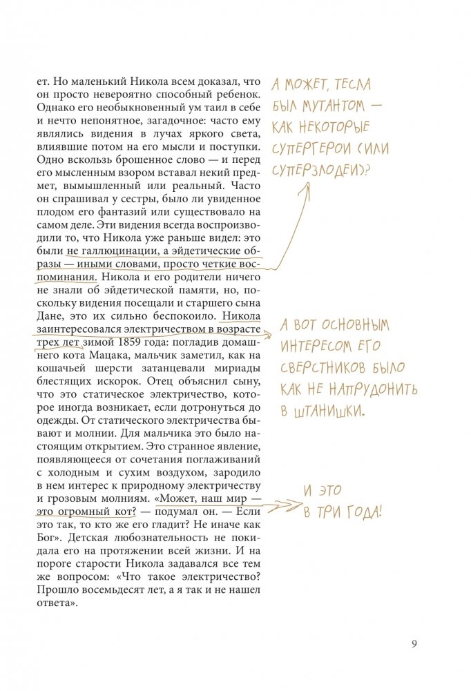 Мечтатель и мистик Никола Тесла не мог объяснить ни своей боязни микробов, ни страсти к числам, делящимся на три, однако умел покорять молнии и превращать ночь в день. Он изобрел двигатель переменного тока и стал родоначальником беспроводной связи, но умер в полном забвении. Иллюстрированная биография Теслы расскажет о непростом пути великого изобретателя: как он покорял своими изобретениями Европу и Америку, о работе, а затем и противостоянии с Томасом Эдисоном, о сложностях с финансированием и патентами. О том, как частные компании наживались на его труде, в то время как сам изобретатель провел жизнь в нищете, настоящее признание получив только после смерти. По-настоящему темная история — в учебниках такого не напишут!