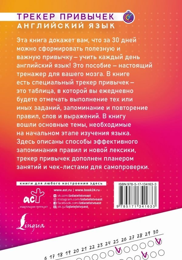 Эта книга докажет вам, что за 30 дней можно сформировать полезную и важную привычку - учить каждый день английский язык! Это пособие – настоящий тренажер для вашего мозга. В книге есть специальный трекер привычек - это таблица, в которой вы ежедневно будете отмечать выполнение тех или иных заданий, запоминание и повторение правил, слов и выражений. В книгу вошли основные темы, необходимые на начальном этапе изучения языка. Здесь описаны способы эффективного запоминания правил и новой лексики. Трекер привычек дополнен планером занятий и чек-листами для самопроверки.