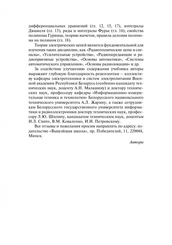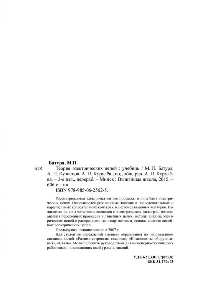 Рассматриваются электромагнитные процессы в линейных электрических цепях. Описываются резонансные явления в последовательных и параллельных колебательных контурах, в системе связанных контуров. Излагаются основы четырехполюсников и электрических фильтров, методы анализа переходных процессов в линейных цепях, методы анализа электрических цепей с распределенными параметрами, основы синтеза линейных электрических цепей.