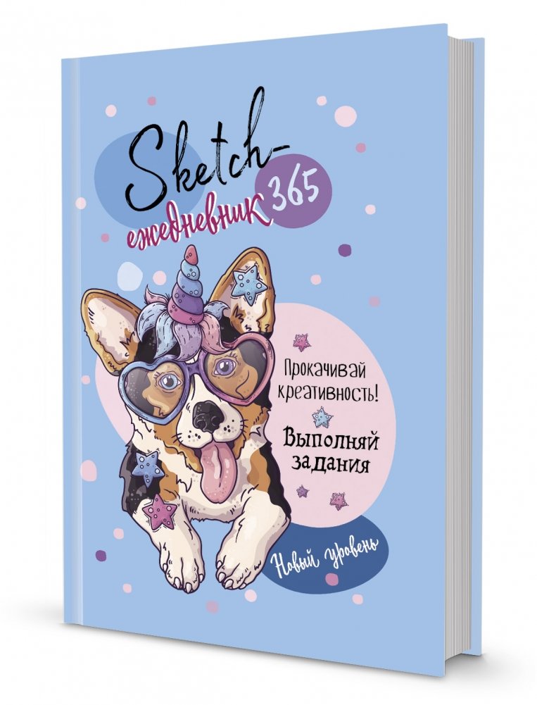 Скетч-ежедневник. Sketch-challenge. 365 идей для скетчинга. Новый уровень (корги, голубая)