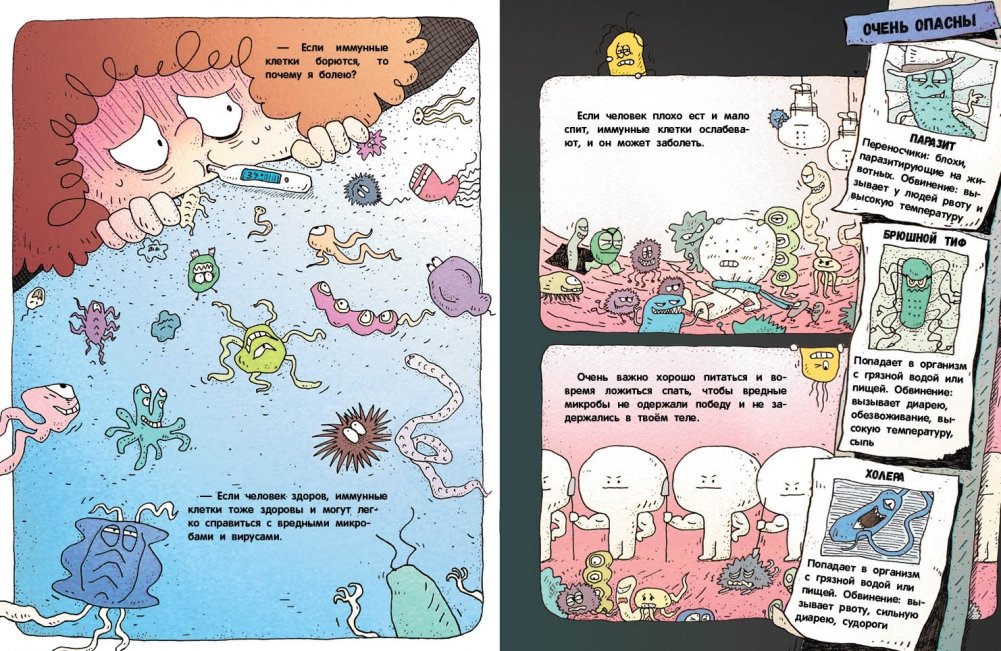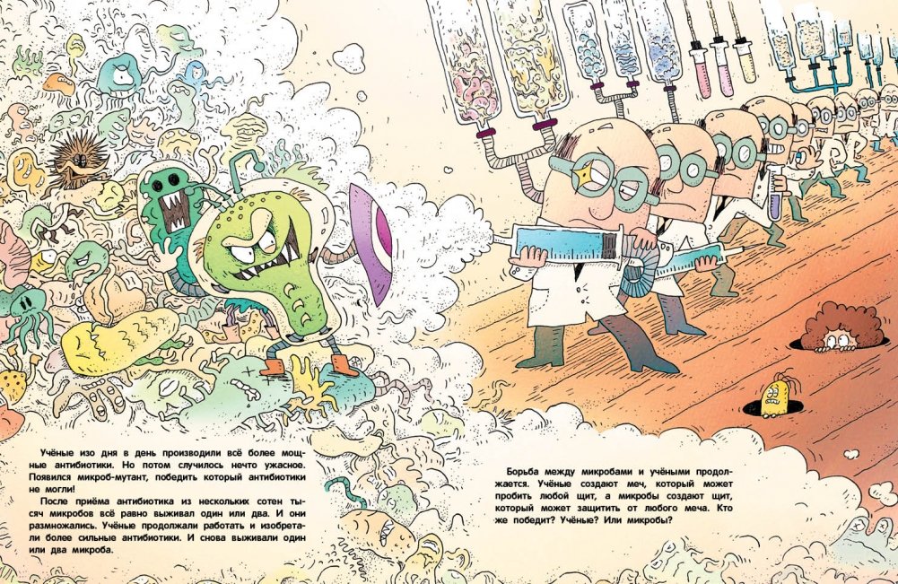 Лесные приключения начинаются! 2. "Отель для микробов". А ты знаешь, что твоё тело — это роскошный отель, в котором живём мы, микробы? Нам здесь очень нравится: тепло, комфортно и всегда есть что покушать. Мы поселились во всех уголках твоего тела – от пальцев ног до головы. Нет-нет, не торопись говорить «Фу!», мы не такие плохие, как может показаться на первый взгляд. Мы перерабатываем пищу, которую ты ешь, превращаем её в полезные вещества и равномерно распределяем по клеткам твоего тела. А ещё многие из нас защищают тебя от болезней. Видишь, какие мы полезные? Надеюсь, тебе уже захотелось познакомиться с нами поближе! 3. "Секрет плодовых мушек". Привет! Давай знакомиться! Я - плодовая мушка. В этой книге я открою тебе много удивительных секретов о себе и своих родственниках. "Эй! Да кто такие эти плодовые мушки, чтобы писать о них целую книгу?!" - наверняка возмутишься ты. Но, пожалуйста, не спеши с выводами. Ты даже не представляешь, насколько мы важны и полезны. Я расскажу тебе, как мы помогаем людям искать лекарства от разных болезней. А ещё ты узнаешь, что такое гены и мутации и почему у некоторых мушек (например, у меня) глаза белые, а не красные, как у остальных. И, наконец, ты поймёшь, что плодовые мушки и люди очень похожи. Да-да, это правда!