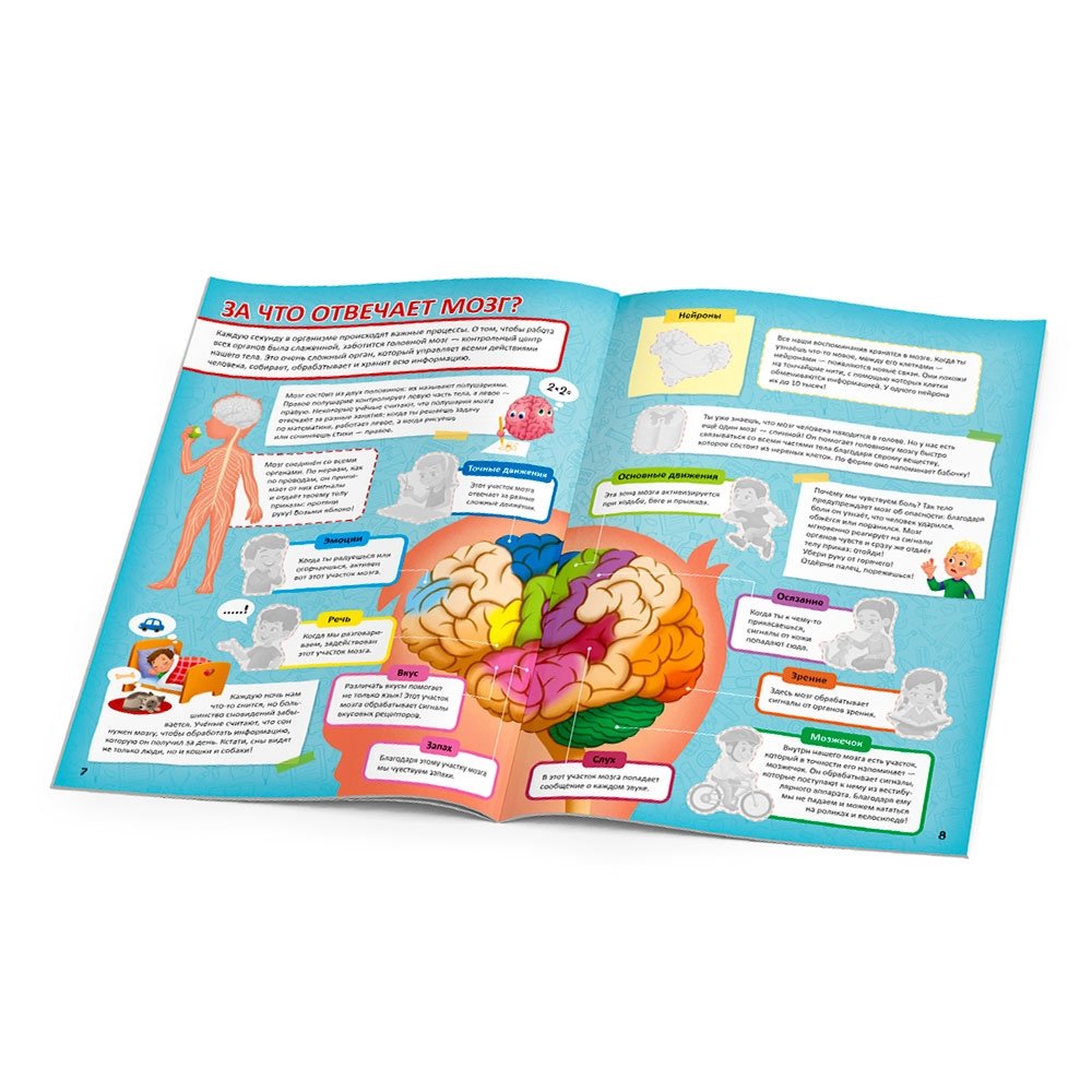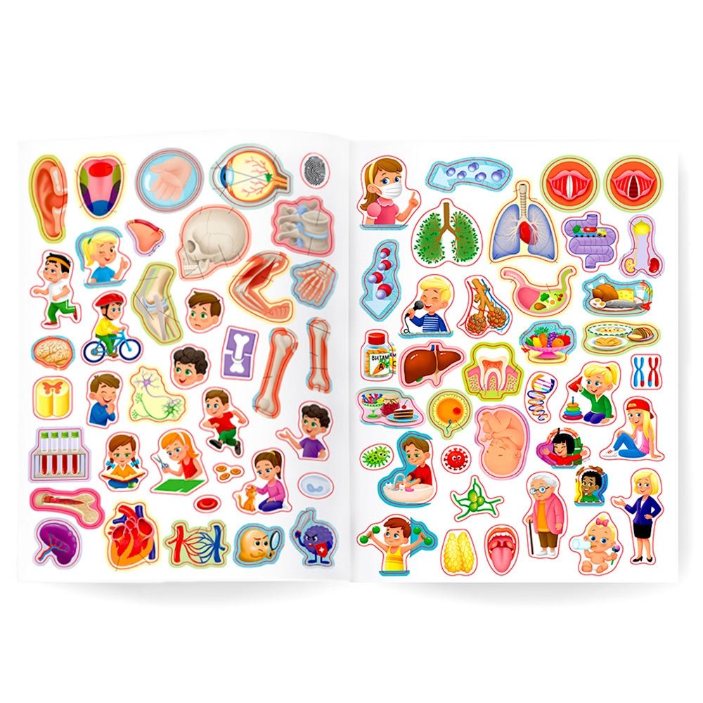 Как в доступной форме объяснить ребёнку устройство человеческого тела? Легко с нашим атласом «Тело человека». В нём простым и понятным ребёнку языком рассказывается о том, как устроен организм человека, как работает наш иммунитет, сколько костей в теле и ещё много всего интересного. Самые любознательные смогут найти на первой странице увлекательный кроссворд. Ну и конечно, куда же без ярких и интересных наклеек, место которых нужно разыскать в атласе.
