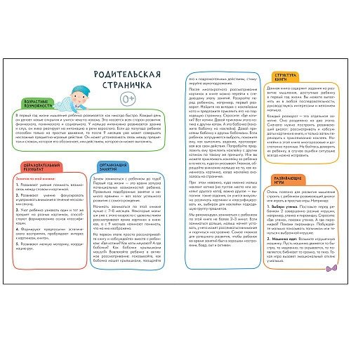 Книга «Развитие мышления 0+» из серии «Школа Семи Гномов. Активити с наклейками» предназначена для развития и тренировки мышления детей от рождения до года.