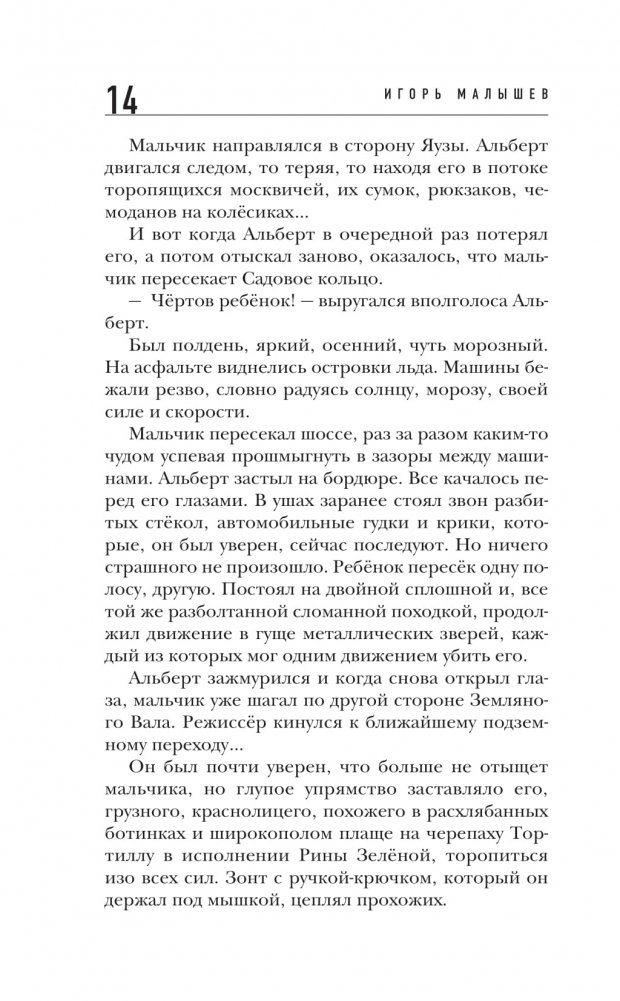 Новый роман Малышева тоже балансирует на грани между городской сказкой и былью: в центре повествования судьбы двух подростков - Мыша и Ветки, оказавшихся актёрами таинственного театра на Раушской набережной Москвы-реки. В этом театре пересекаются пространства и времена, реальность столичных улиц перетекает во вселенную вымысла, памятники людским порокам, установленные на Болотной площади, встречаются с легендами Древней Греции. Вы встретите здесь Диониса, окружённого толпой вакханок и фавнов, ледяных ныряльщиков, плавящих лёд своими телами, и удивительного Гнома, который когда-то был человеком, но пожертвовал жизнью ради любимой…