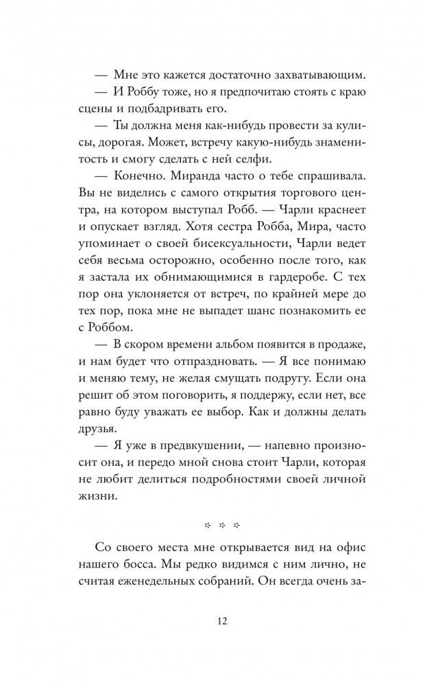 Дэниел: Я был влюблен в нее еще со школы. Красивая, умная, популярная. Девушка моей мечты, ни больше, ни меньше. Как же мне повезло, когда я снова встретил ее спустя много лет в кафе Манхэттена. Разумеется, я бы хотел, чтобы она сразу откликнулась на мои чувства. НоТэй попала в тяжелую ситуацию, и то, что сейчас более уместно… Это убедить ее в том, что девушки меня не интересуют.