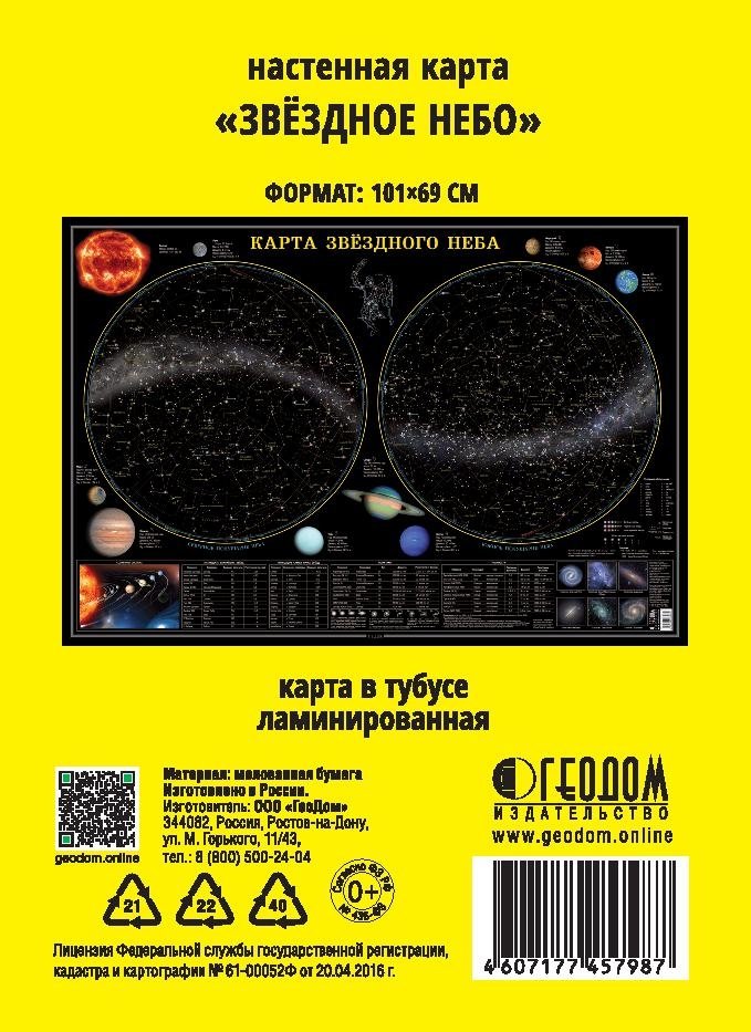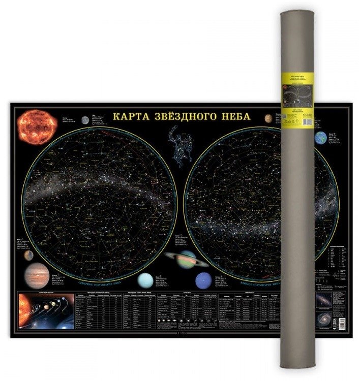 Карта настенная "Звездное небо. Планеты", 101х69 см (ламинированная в тубусе)