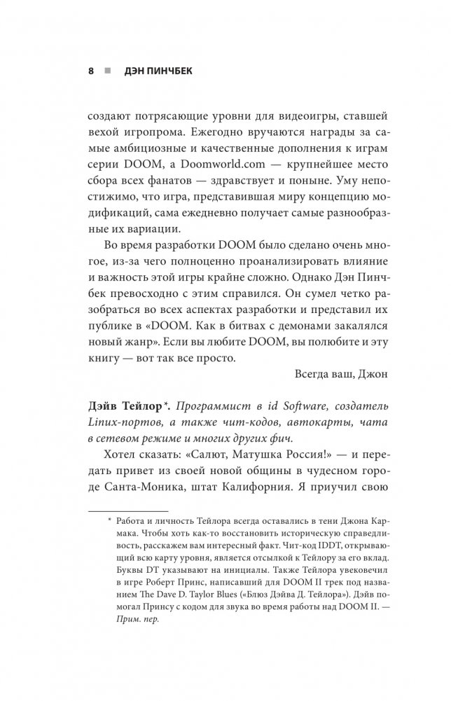 Книга Дэна Пинчбека – блестящий анализ того, каким образом Джону Кармаку и Джону Ромеро удалось создать настолько успешный хит и стать отцами нового жанра видеоигр.