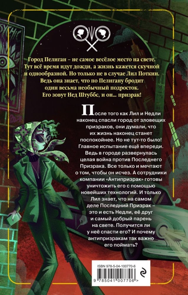 Жители Пелигана наконец могут жить спокойно: привидения, которые угрожали их жизням, больше никогда не вернутся в город. Остался лишь Последний Призрак – загадочное и неуловимое существо, которое наверняка хочет причинить вред людям. Но справиться с ним будет не трудно, ведь компания "Антипризрак" готова уничтожить его с помощью новейших технологий. И только Лил Поткин знает, что на самом деле Последний Призрак совсем не опасен. Ведь это её друг Недли Штуббс, самый добрый парень на свете. Но как объяснить это остальным? А главное – как спасти Недли? Третья книга серии.