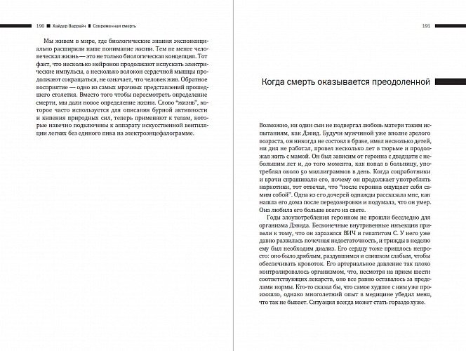 По сравнению с серединой XX столетия радикально изменились все аспекты окончания нашей жизни — от чего мы умираем, когда умираем, где умираем и как умираем. В результате прогресса медицинской науки и медицинских технологий даже само определение смерти теперь формулируется иначе — что уж говорить о ее экологии, эпидемиологии, экономике и этике. Американская медицина прошла за это время огромный путь освоения новых подходов к смерти и умирающим — путь, на который в некоторых отношениях еще только предстоит вступить России. В своей дебютной книге доктор Варрайч рассказывает о сегодняшних ритуалах смерти и о ее современном языке — и на основе своего опыта лечащего врача в отделении интенсивной терапии крупной американской больницы задумывается о том, что лучше получалось у наших предков и в чем мы явно превзошли их.