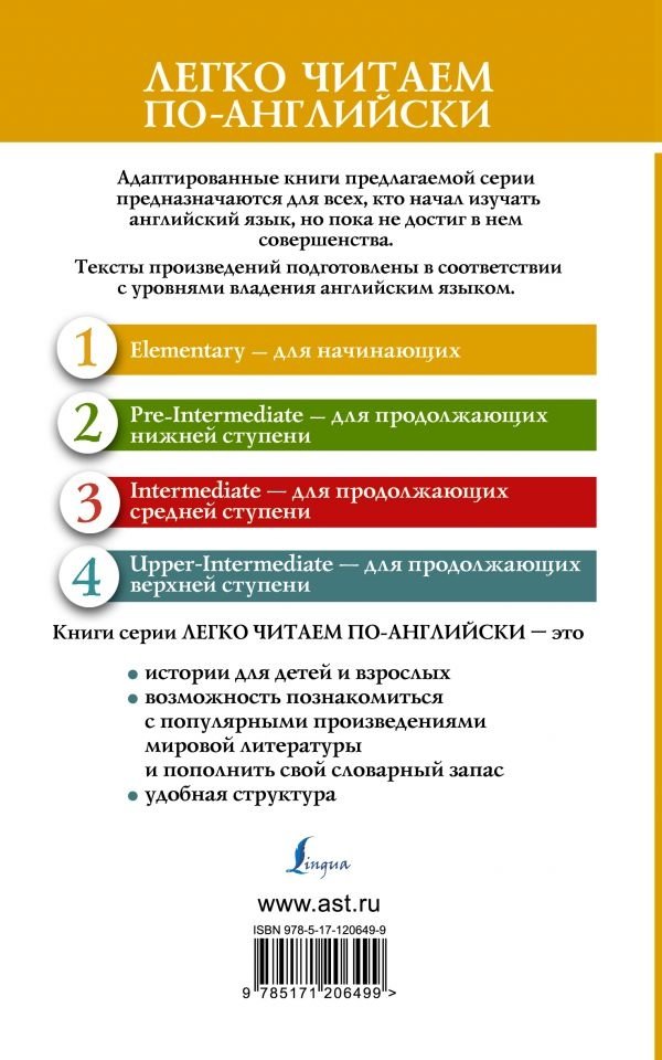 Помимо текста произведения, книга содержит систему упражнений, а также комментарии и словарь. Предназначается для начинающих изучать английский язык (уровень 1 — Elementary).