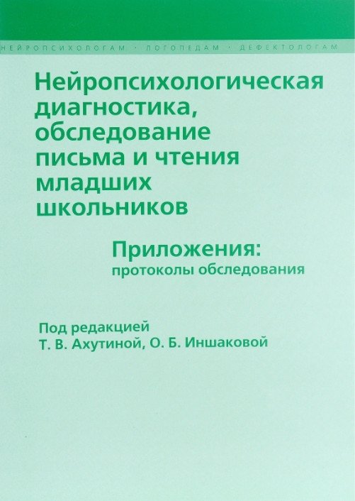 Нейропсихологическая диагностика, обследование письма и чтения младших школьников. Приложения: протоколы обследования
