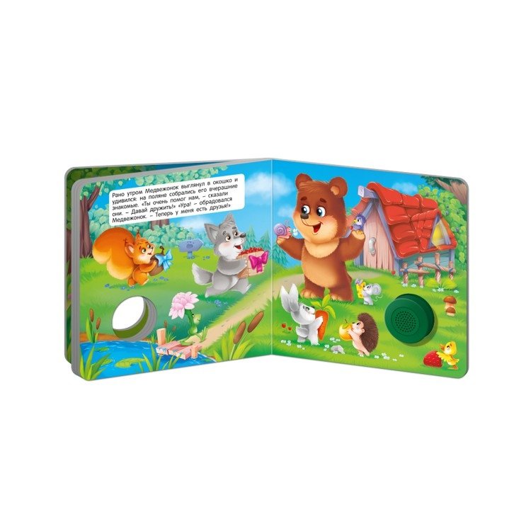 Книги со звуковым модулем для самых маленьких. Нажми на кнопку и послушай голос главного героя. Читай, слушай, играй, расти! В каждой книге серии забавная и поучительная история, яркие картинки и голос главного героя. Это отличный способ познакомить ребенка с окружающим миром и увлечь его чтением. Малыш будет с удовольствием рассматривать яркие страницы и читать историю главных героев книги. Книжка сделана из плотного картона с глянцевой ламинацией, поэтому родители могут не опасаться, что ребёнок порвёт странички. Благодаря компактному формату (15,5х15,5 см) её удобно брать с собой в дорогу. Книжка укомплектована батарейками. Одна кнопка - один звук.