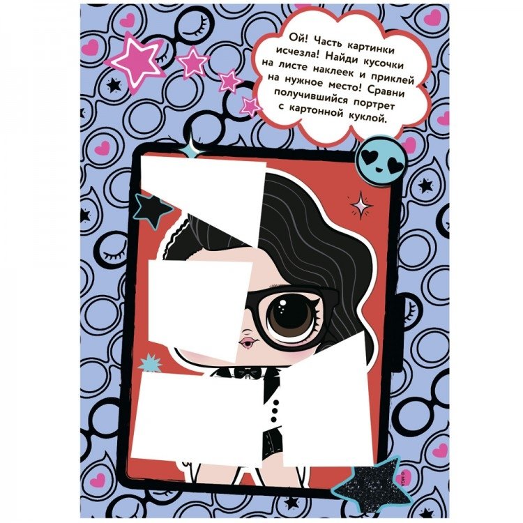 Стильная раскраска с картонной куклой L.O.L. Surprise, разворотом ярких наклеек, увлекательными заданиями, красочными иллюстрациями, головоломками и лабиринтами – лучший подарок для девочки! Большая картонная куколка Лол (высота 20,5 см) - стильная, яркая - устанавливается на компактные подставки. Волосы и одежду куклы lol surprise украшает глиттер: блестки переливаются на свету, это делает куклу ещё красивее и очаровательнее. Куколки L.O.L. идеально подходят для игры и коллекционирования, ведь в серии представлено 8 различных книг: каждая из которых – это новые игровые задания, новые наклейки и новая картонная куколка Лол! Раскраска с развивающими заданиями приведет в восторг девочку, которой нравятся куклы лол (lol surprise) – всегда такие разные и необыкновенно привлекательные. Книга с заданиями L.O.L. Surprise (lol surprise) – готовый подарок на Новый год девочке от 3 лет. Развивающая книга с картонной куколкой L.O.L. Surprise из серии «L.O.L. Surprise! Раскраска с наклейками и большой куклой» изготовлена по официальной лицензии MGA.